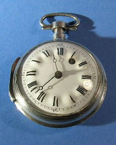 CONSTRUCTOR: Anónimo suizo. FECHA: C.1820. CAJA: Caja consular en plata lisa. ESFERA: Esmalte blanco sobre cobre. Numeración romana para las horas y arabe, de quince en quince para los minutos. Esfera estilo "bosselé" con los numeros sobre protuberancias. Toma de cuerda entre el I y el II. Agujas Breguet en acero azulado. MÁQUINA: Latón dorado de platina plena. Pilares de sección cuadrangular. ESCAPE: Rueda catalina y regulador de índice. TAMAÑO: 5.4 cm. NOTAS: Las esferas "bosselé" fueron frecuentes en los cebollones francese de comienzos del XVIII. El constante ir y venir de las modas no es exclusivo de nuestro tiempo; así en esta pieza vemos resurgir un estilo olvidado cien años antes. ESTADO: Esfera: Muy bien, finas lineas en torno al IIII y al X Caja: Muy bien. Máquina: Muy bien. Estado de marcha. Se acompaña de curiosa cadena y llave realizadas con monedas. |